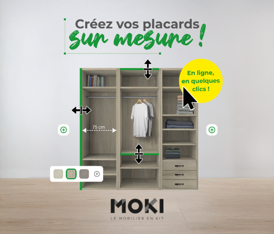 Aménager son dressing ou placard devient beaucoup plus simple grâce à notre outil de configuration en ligne MOKI. Cet espace interactif vous permet de concevoir votre rangement de A à Z, sans connaissances techniques particulières, et de visualiser immédiatement le résultat.