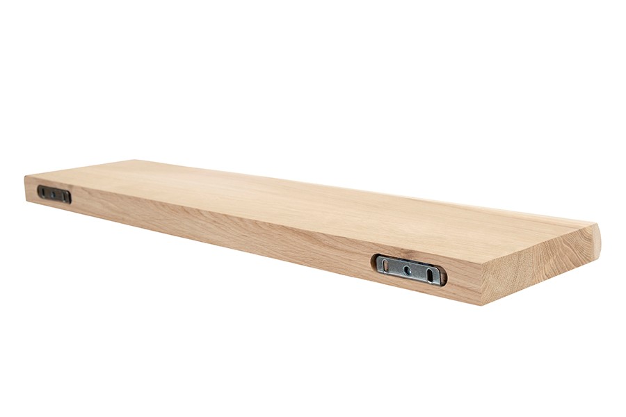 Apportez du caractère à vos murs avec cette étagère en chêne brut avec bords irréguliers et fixation invisible pour un effet flottant et design.