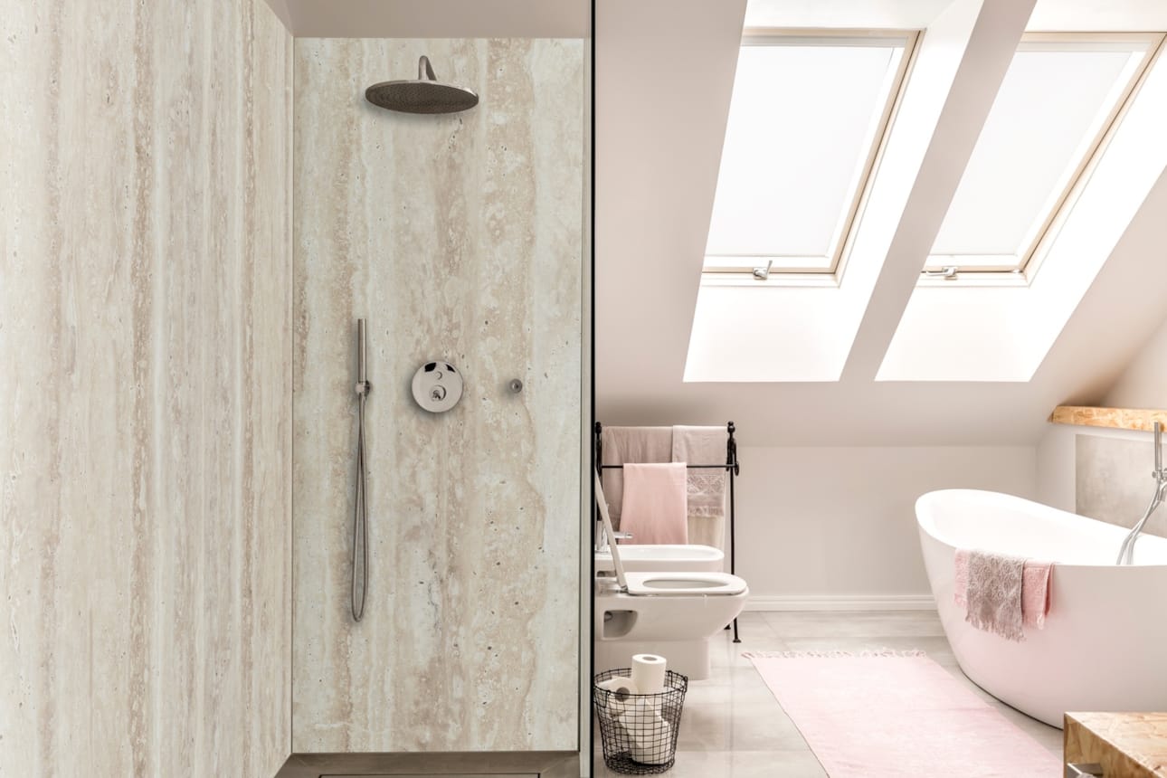 Les panneaux Dumawall XL sont une solution murale en matière synthétique et 100% imperméables, idéale pour rénover rapidement une salle de bains ou une douche. Grâce à la technologie RCB® (Rigid Core Board), ils offrent une excellente résistance à l'eau, aux UV et à l'usure.
