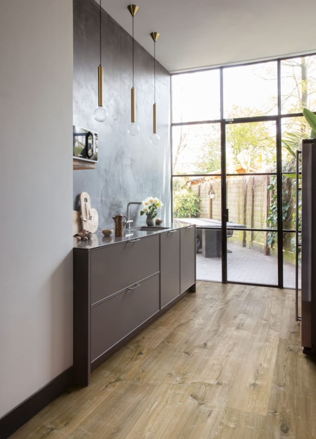 Ce sol stratifié est 100 % résistant à l’humidité, ce qui le rend idéal pour les pièces exposées à l’eau comme la cuisine ou la salle de bain. La technologie Scratch Guard le rend également jusqu’à dix fois plus résistant aux rayures qu’un sol stratifié standard.