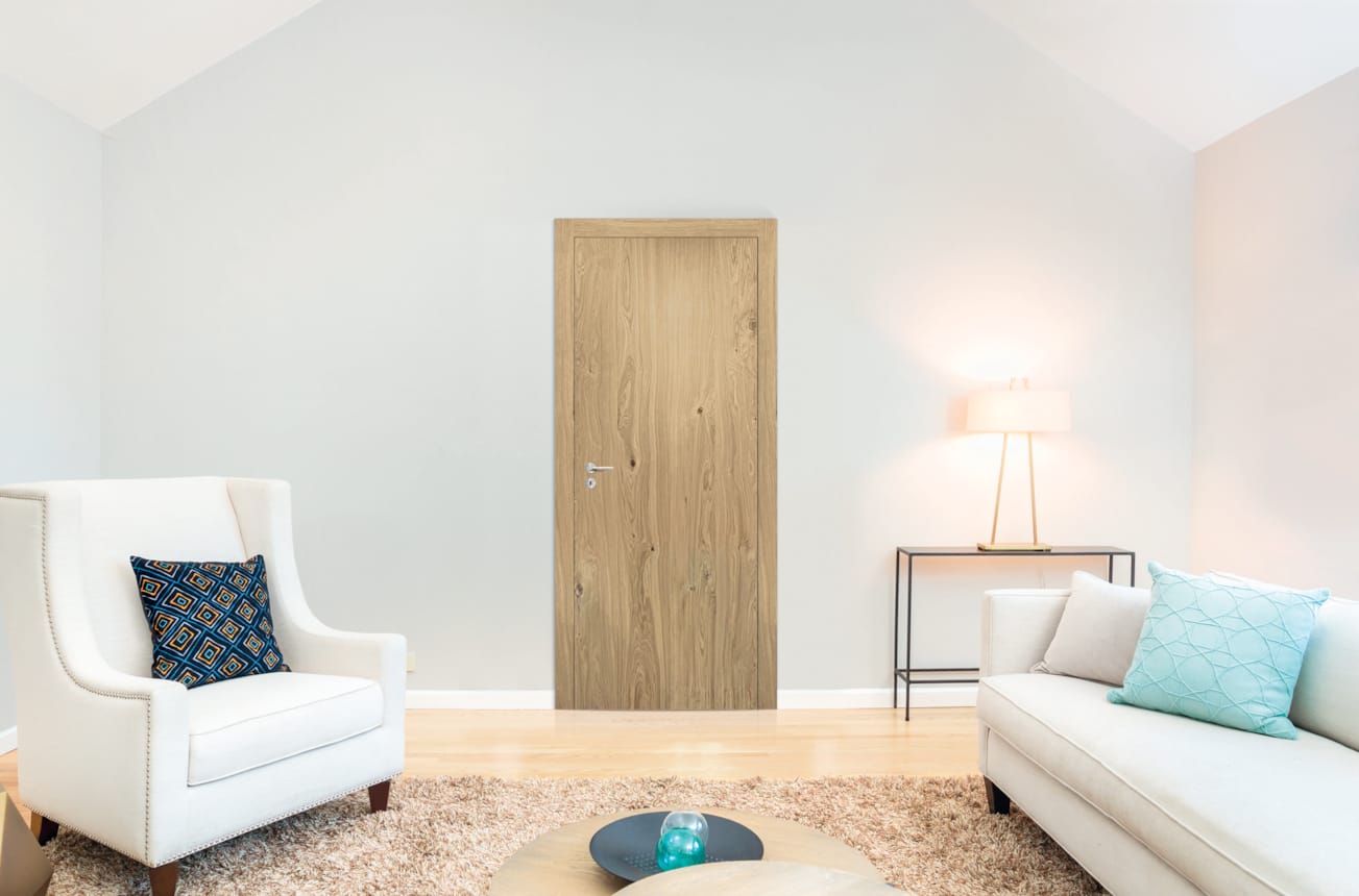 Porte plaquée chêne vertical - Qualité rustique - Âme pleine - 201,5 x 63 cm