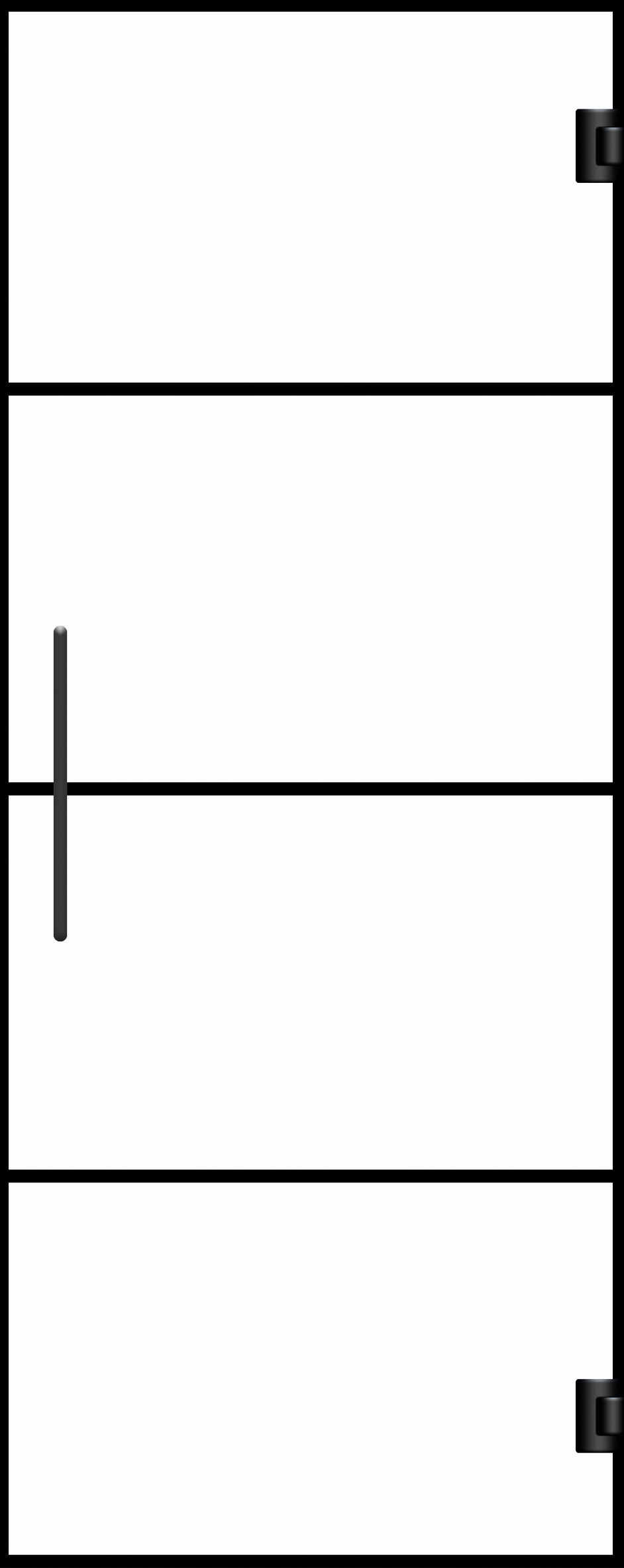La porte Thytan va-et-vient est une porte en verre securit de 8 mm d’épaisseur à imitation industrielle. Le verre transparent laisse passer beaucoup de luminosité. Cette porte est livrée avec 2 charnières et une poignée de 40 cm noires.