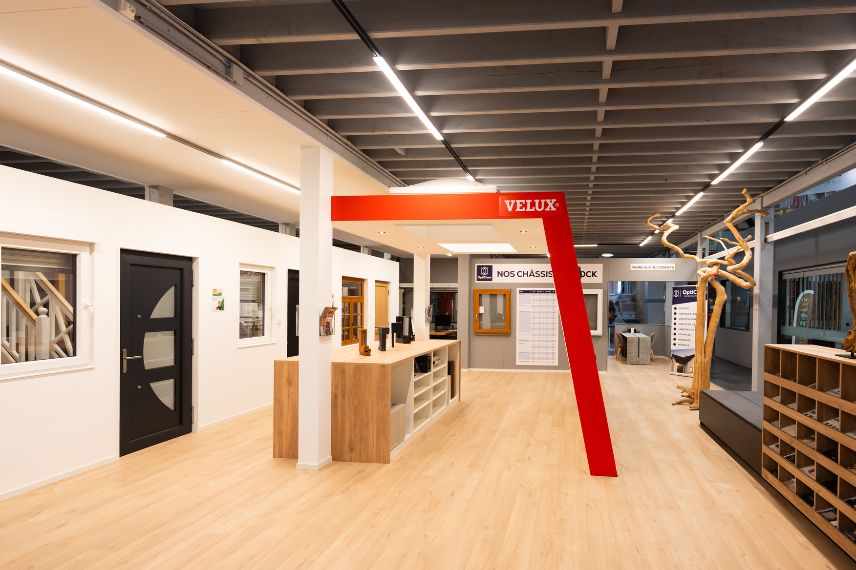 Une surface d'exposition de 1.500 m² à Gosselies où vous découvrirez nos parquets, portes, dressings, lambris, escaliers, châssis,... Sans oublier notre exposition extérieure où sont présentés nos bardages, terrasses, jeux d'enfants, écrans de jardin, chalets, portails,...