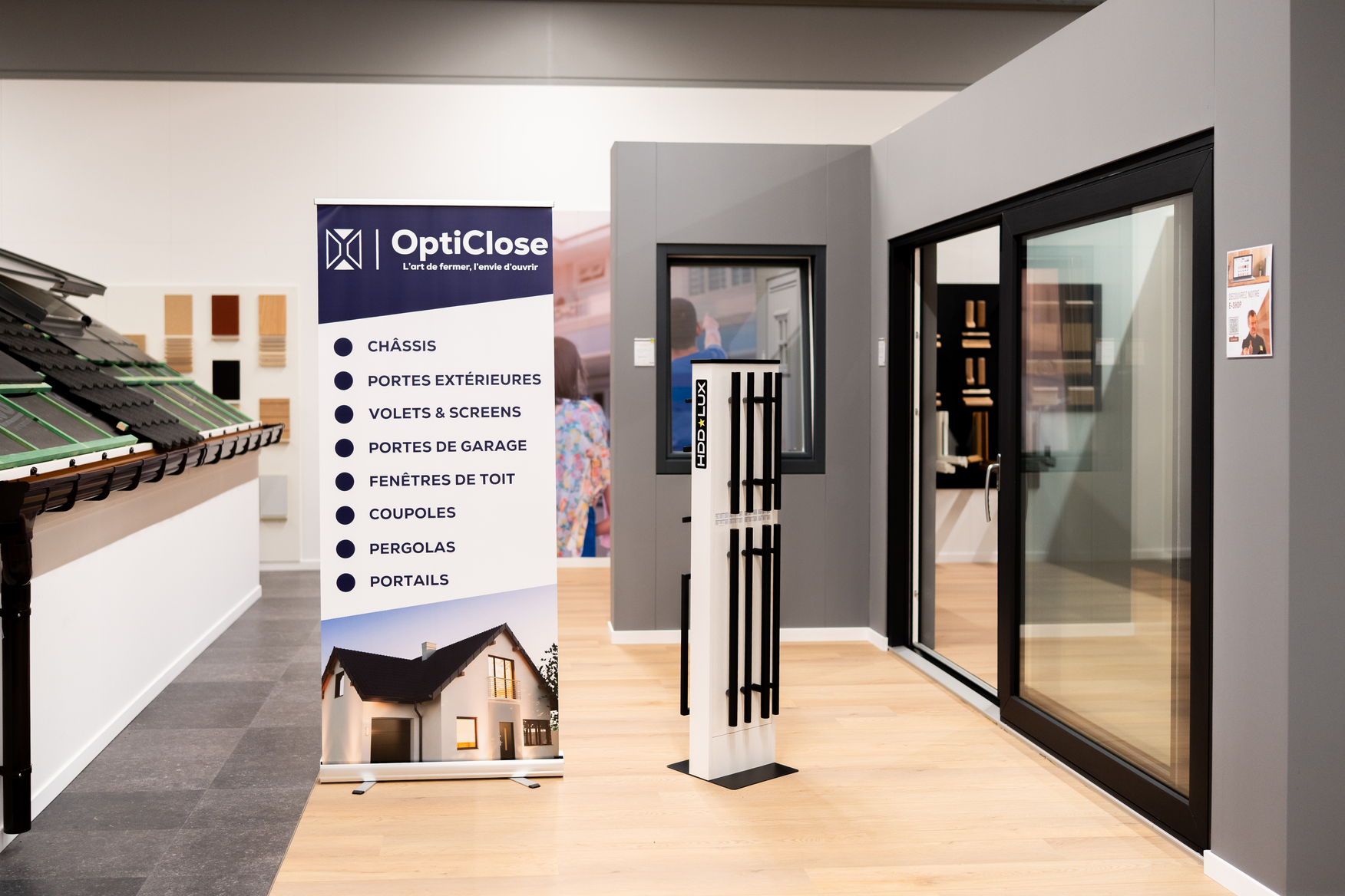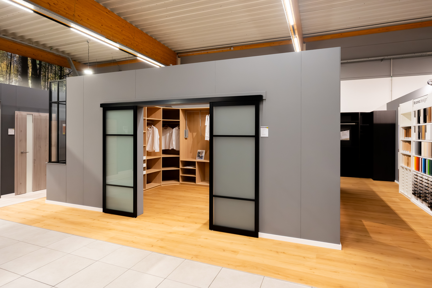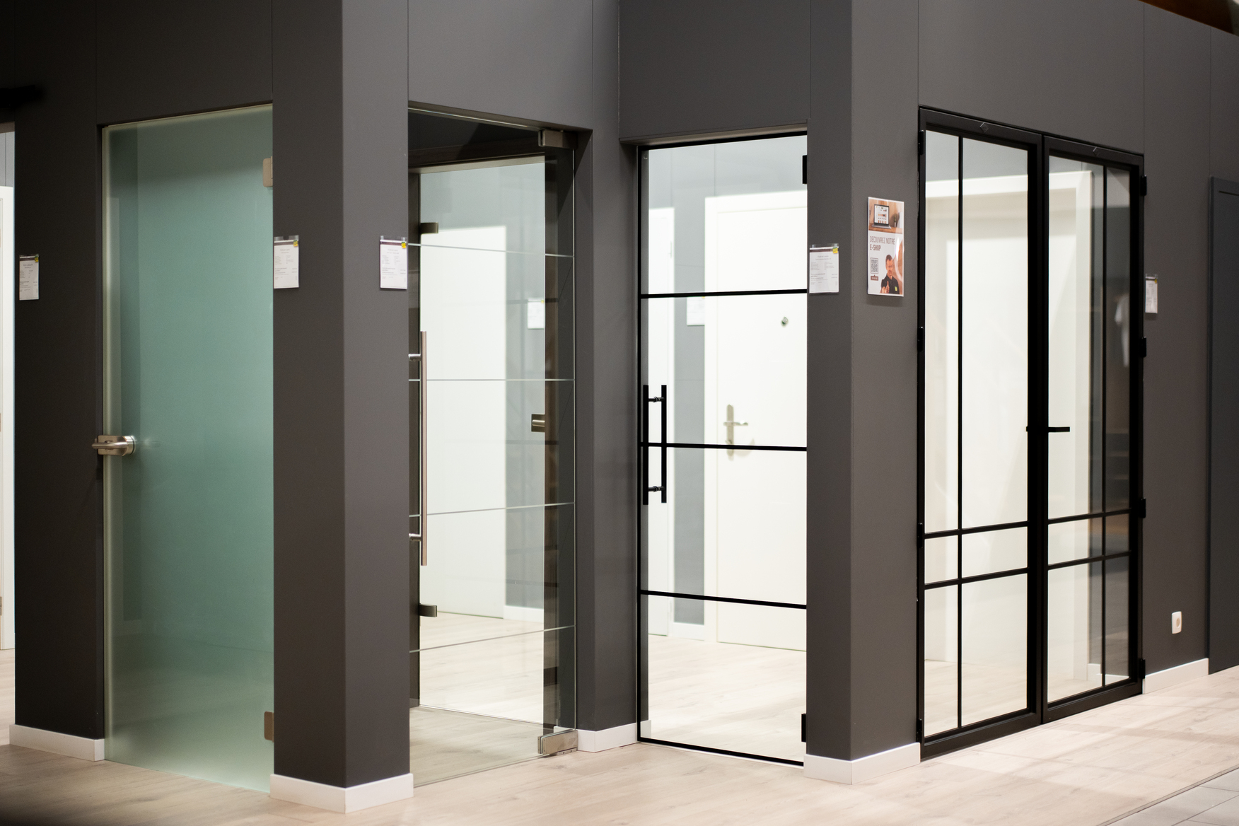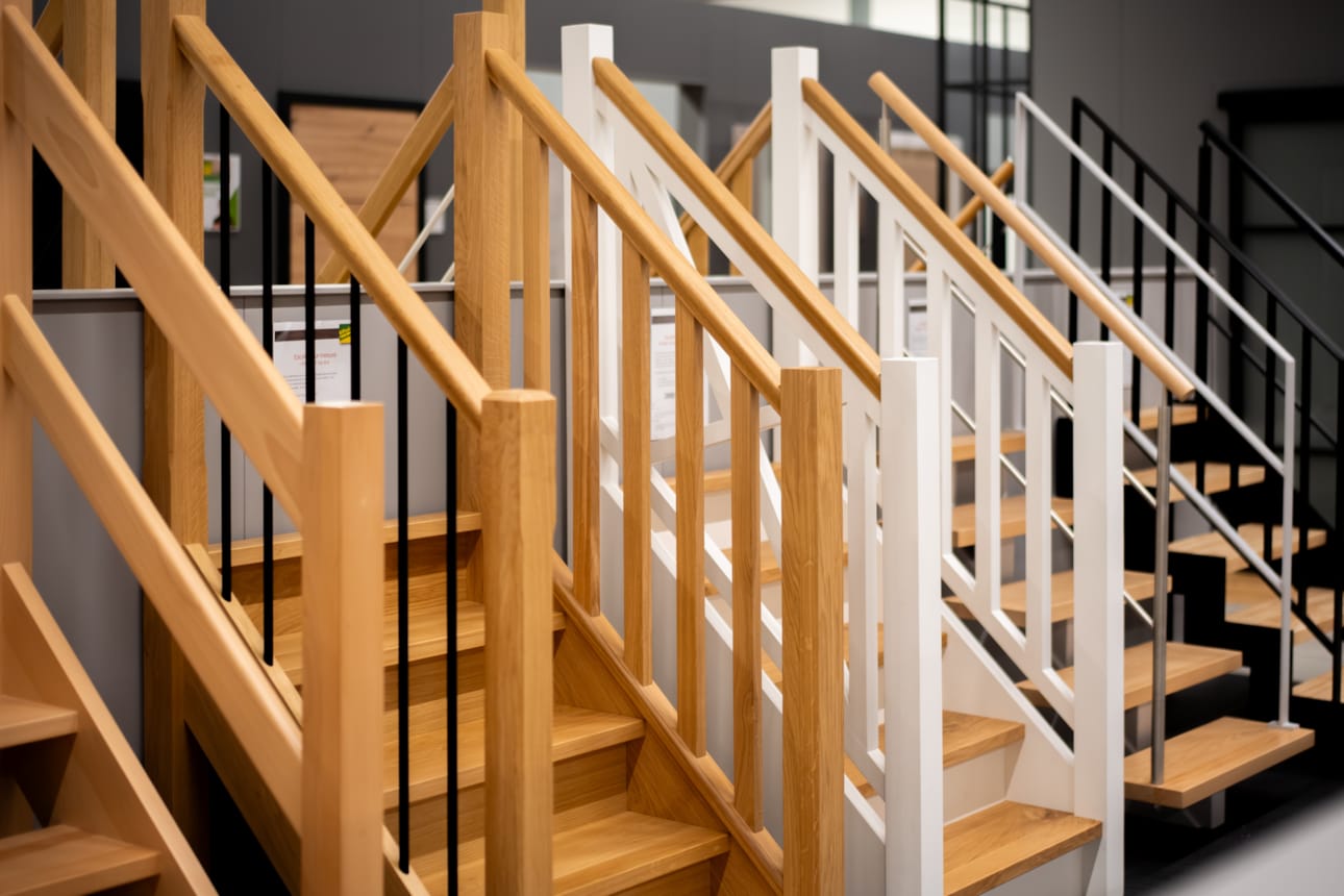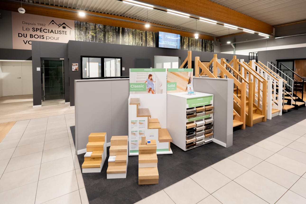 Visitez notre surface d'exposition de 700 m² à Soignies où vous découvrirez nos parquets, portes, dressings, lambris, escaliers, châssis,...