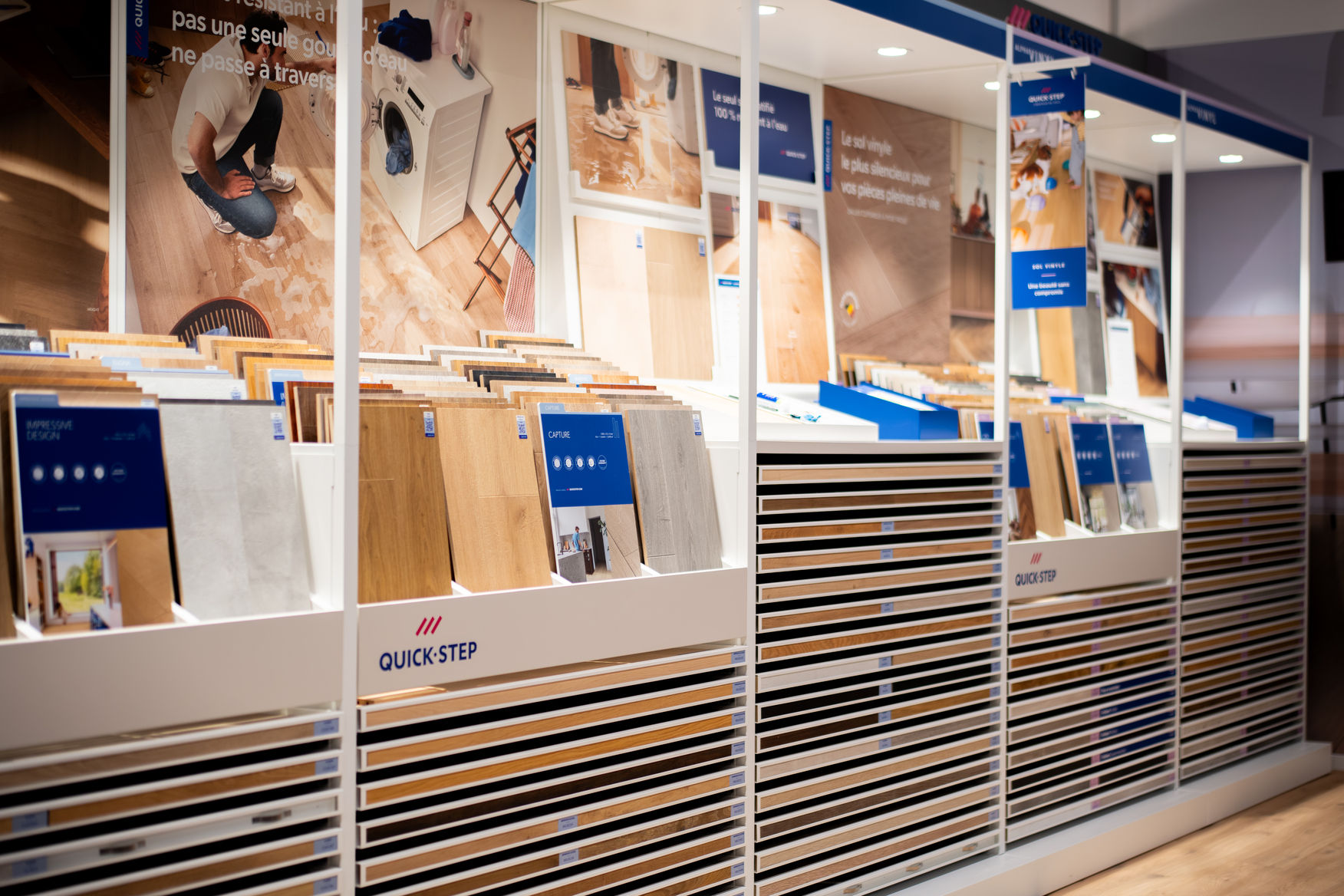 Des surfaces d'exposition de 1.500 m² à Gosselies, 1.000 m² à Court-St-Etienne, 750 m² à Cuesmes, 500m² à Philippeville et 700m² à Soignies où vous découvrirez nos parquets, portes, dressings, lambris, escaliers, châssis, ...